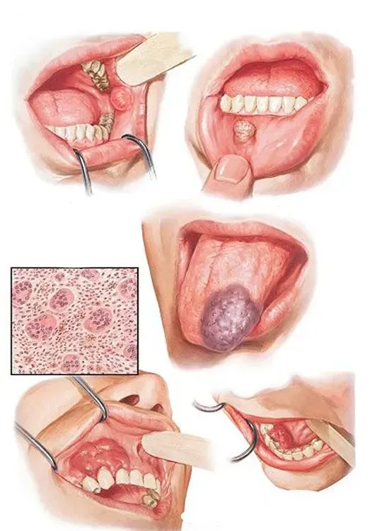 Se pueden notar lesiones o pequeñas verrugas blanquecinas en la boca o garganta y su tratamiento se da mediante láser, cirugía, crioterapia o diversos medicamentos.